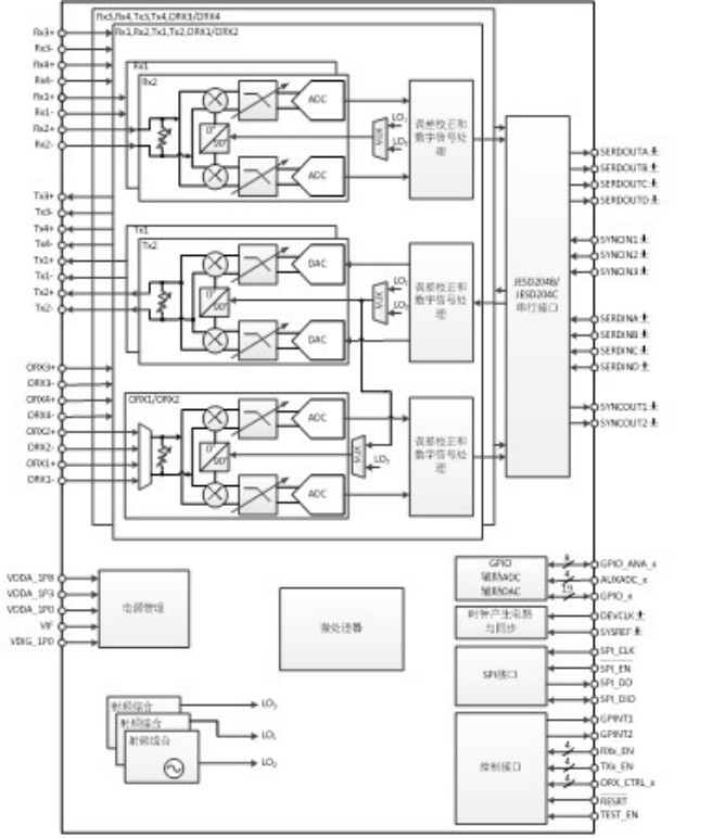 高集成度设计:芯片内部集成了独立的小数N分频频率合成器,并集成优秀的校准算法,实现业界领先的镜像抑制和直流抑制能力。