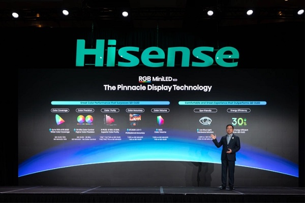 美国当地时间1月5日,CES 2026开展前夕,海信在美国拉斯维加斯正式发布全新一代RGB-Mini LED显示技术。作为该项技术的开创者,海信通过光源、芯片、色彩管理系统的全方位进化,将电视色域突破至110% BT.2020行业新峰值,光色同控精度提升至行业最高134bits,极致丰富、纯净的色彩搭配高阶混光运算和全链路色彩管理,让电视屏幕成为“消融现实与影像的窗口”。