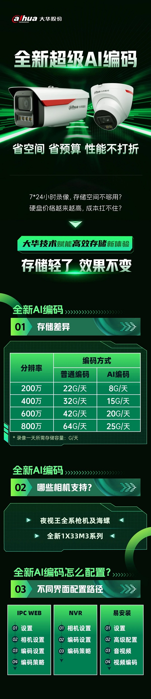 『大华夜视王』全新超级AI编码,省空间、省预算,性能不打折!