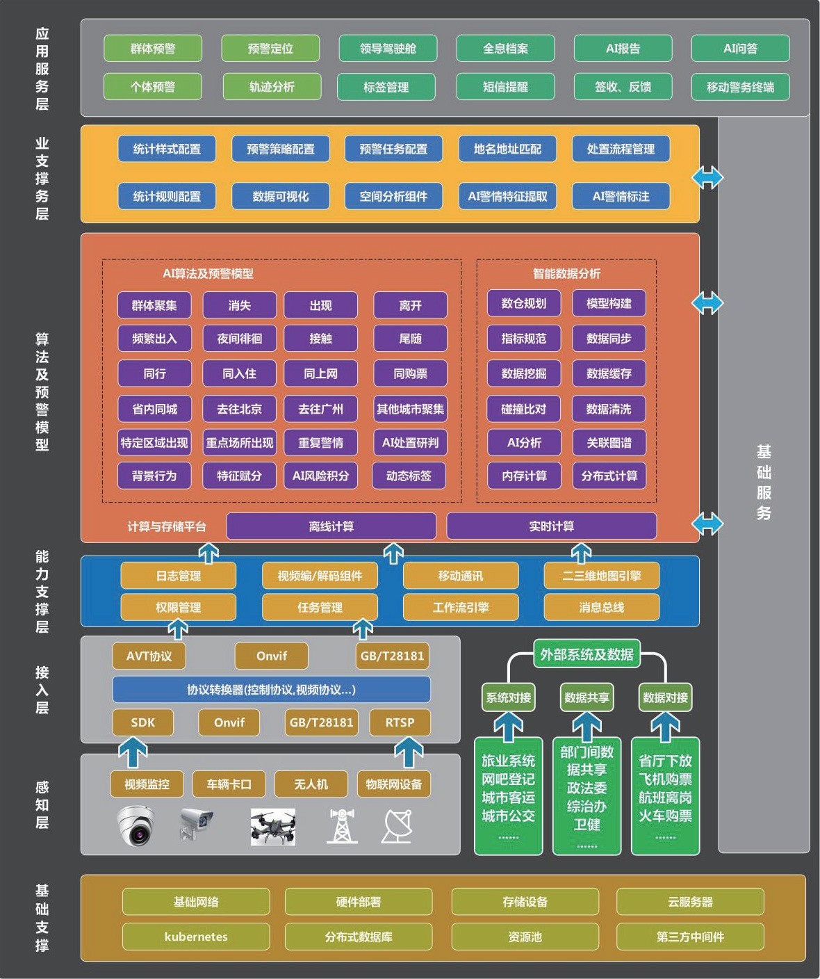 项目由北京万类智能科技有限公司相关项目团队完成建设,构建了一套以“多源数据接入、多场景布控、标签辅助决策、实时预警推送”为核心的AI多维联防共治系统。